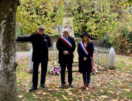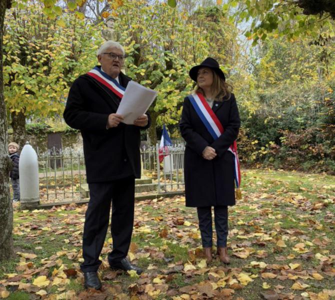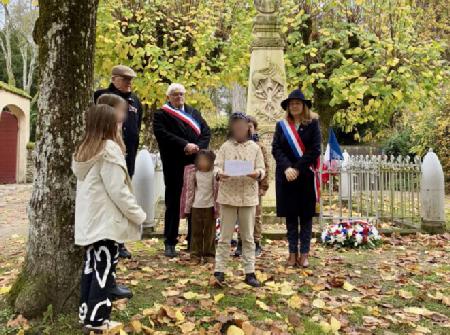 Deux gerbes ont été déposées avant la lecture de poèmes par des enfants du village.